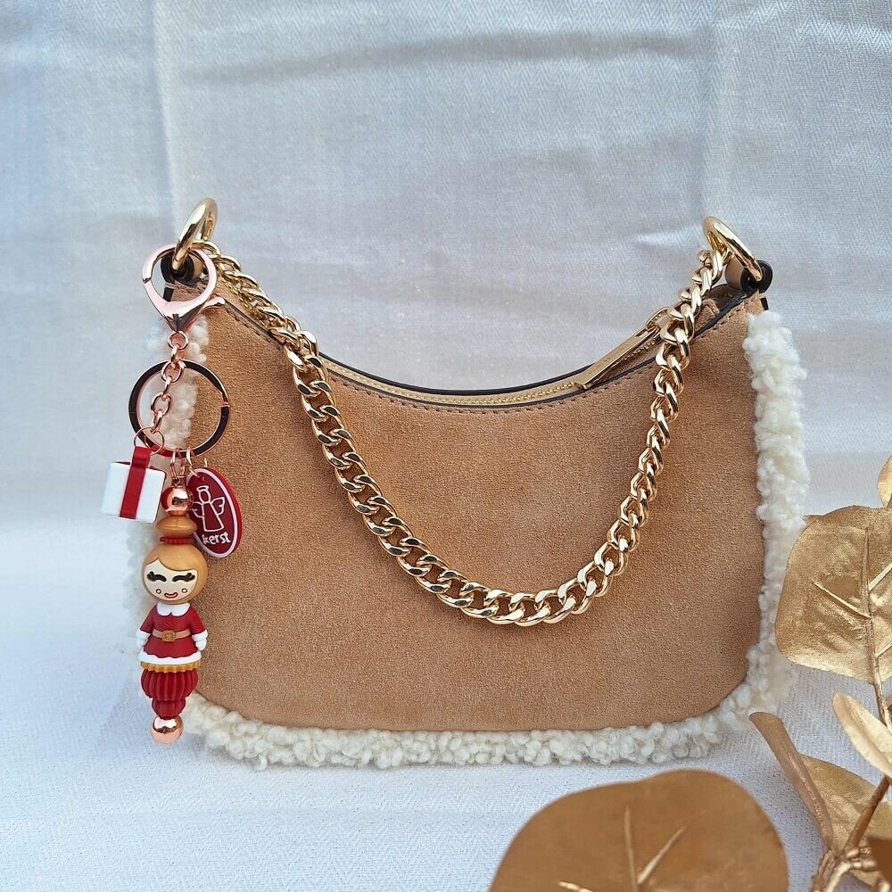 Perfect als klein kerstcadeautje, als stijlvolle sleutelhanger of om aan een tas te hangen. Een klein gebaar dat groot geluk brengt.