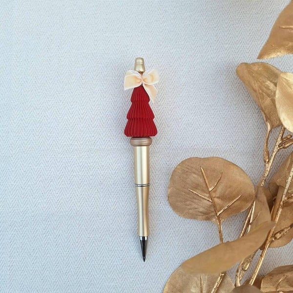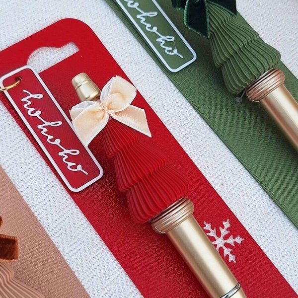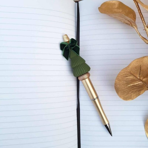 De potloden zijn afgewerkt met een feestelijke kerstboomtopper, fluwelen strik en een luxueuze gouden basis, een subtiele knipoog naar kerst.